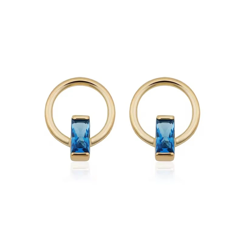 Round Stud Earrings with Blue Stone